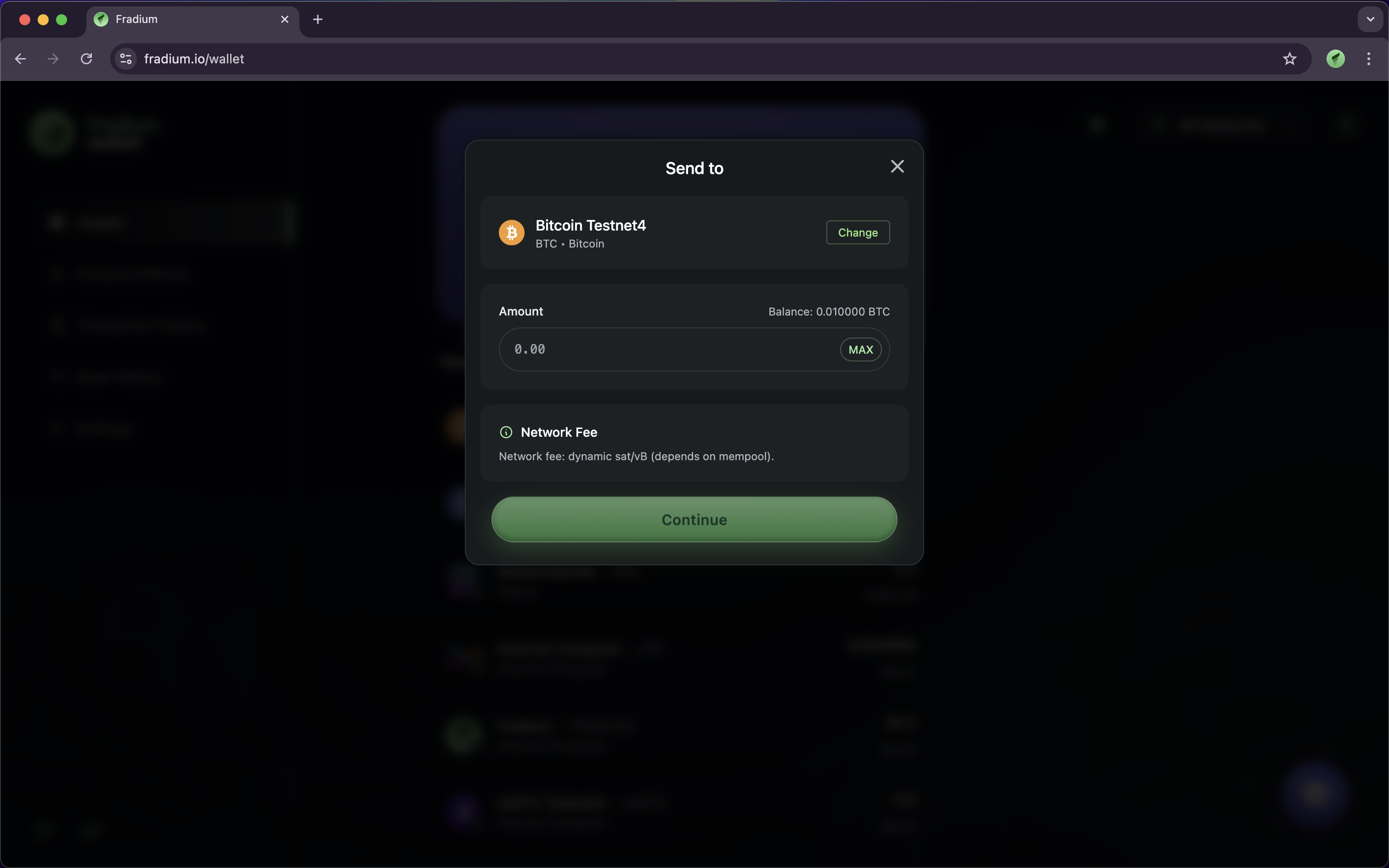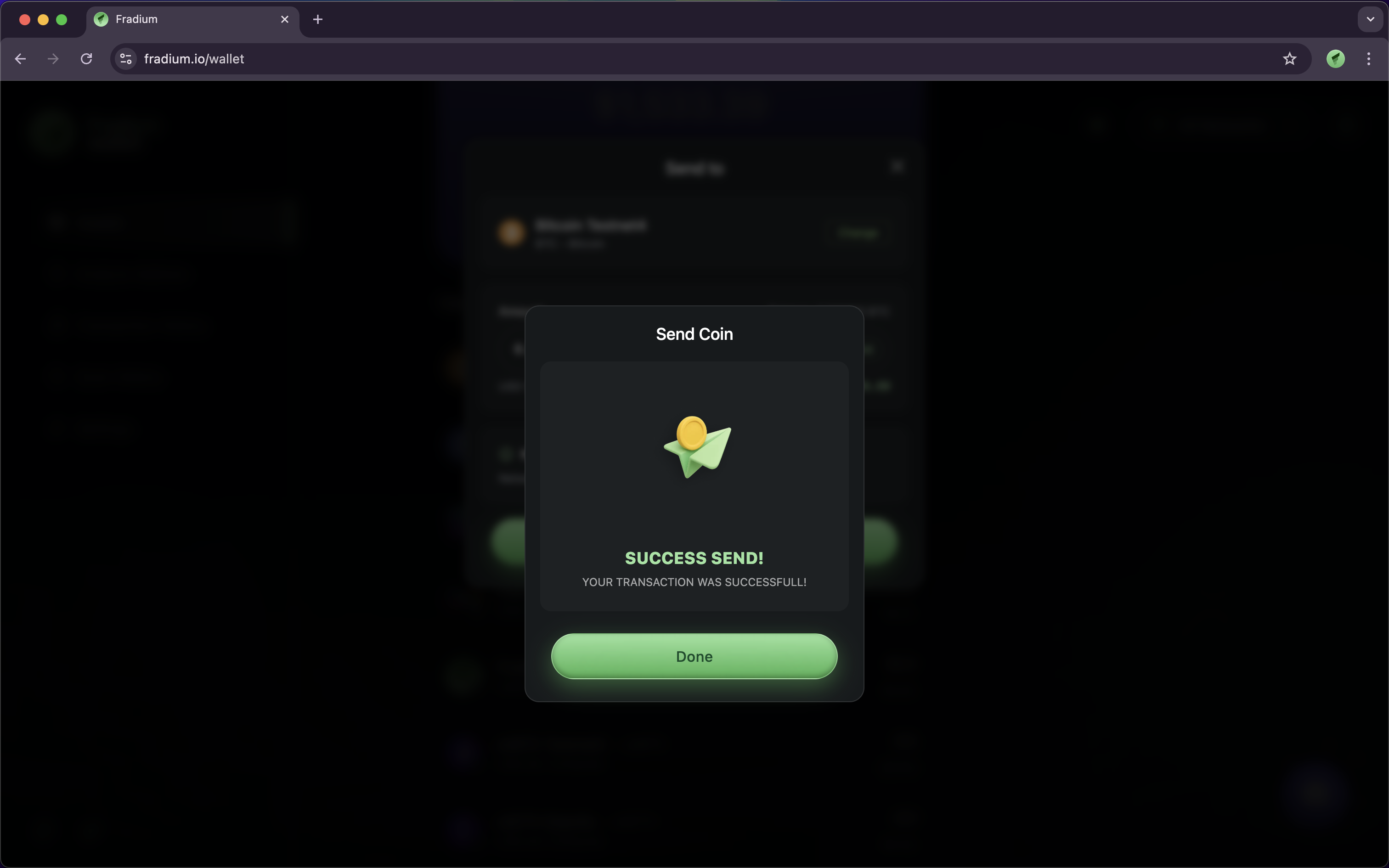 Fradium Wallet also provides a **Transaction** feature, which works similarly to most other wallet applications.&#x20;