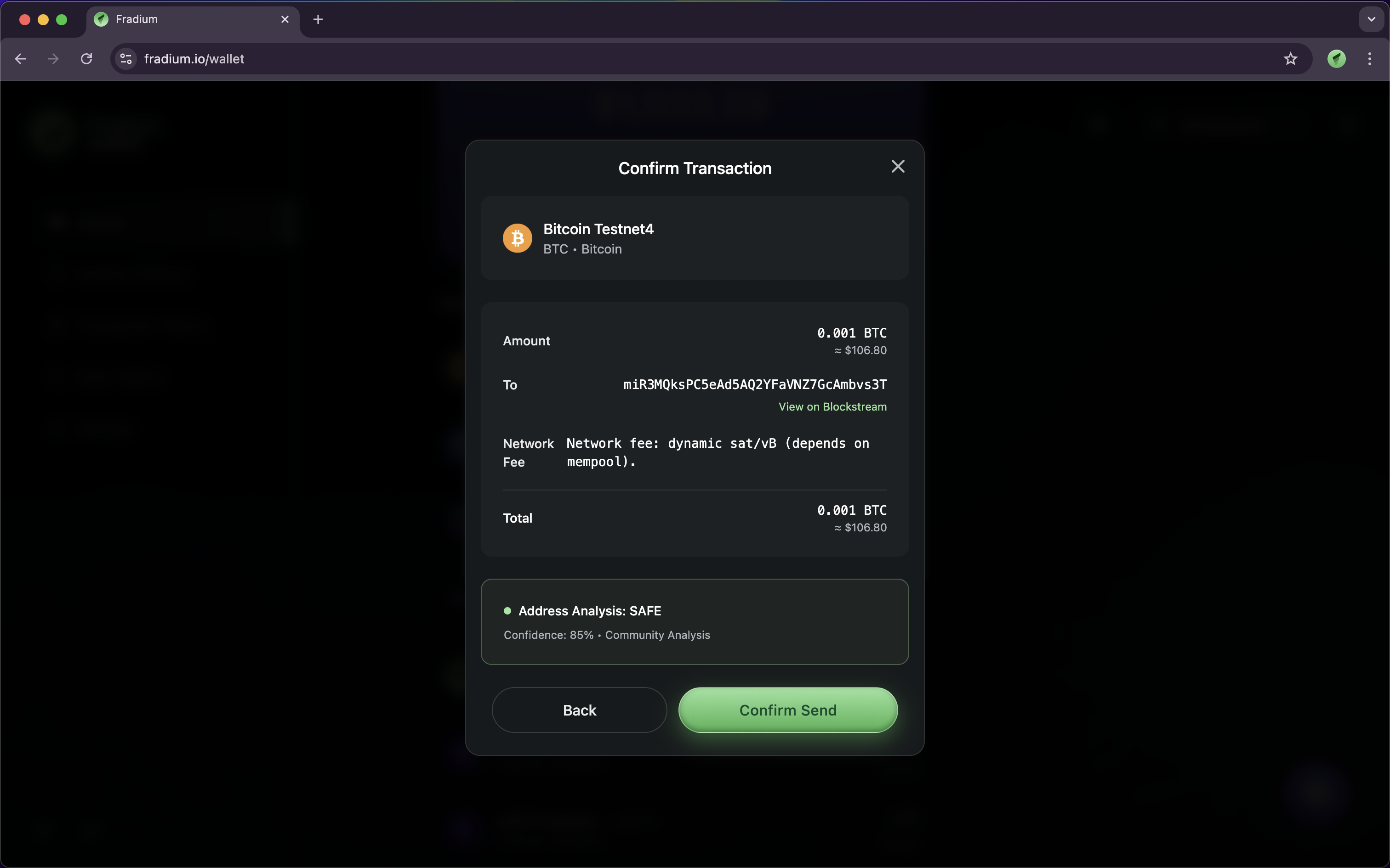 This allows users to automatically check whether the destination address is potentially dangerous before confirming a transaction, giving users an extra layer of security and confidence when sending assets.